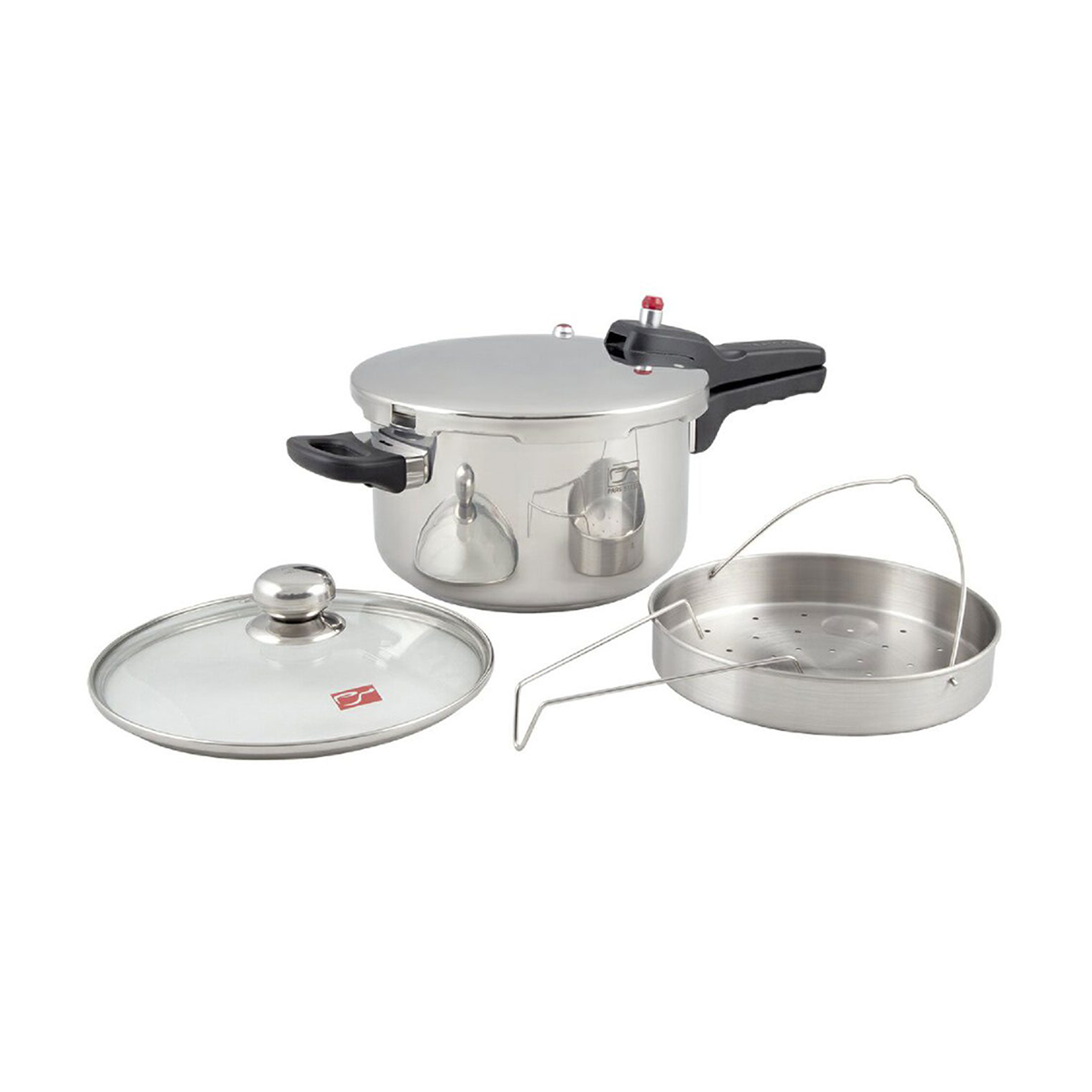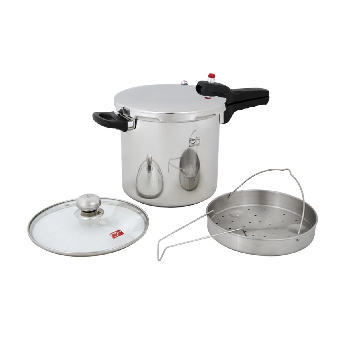 زودپز 6 لیتری پارس استیل به همراه درب پیرکس و سبد بخارپز