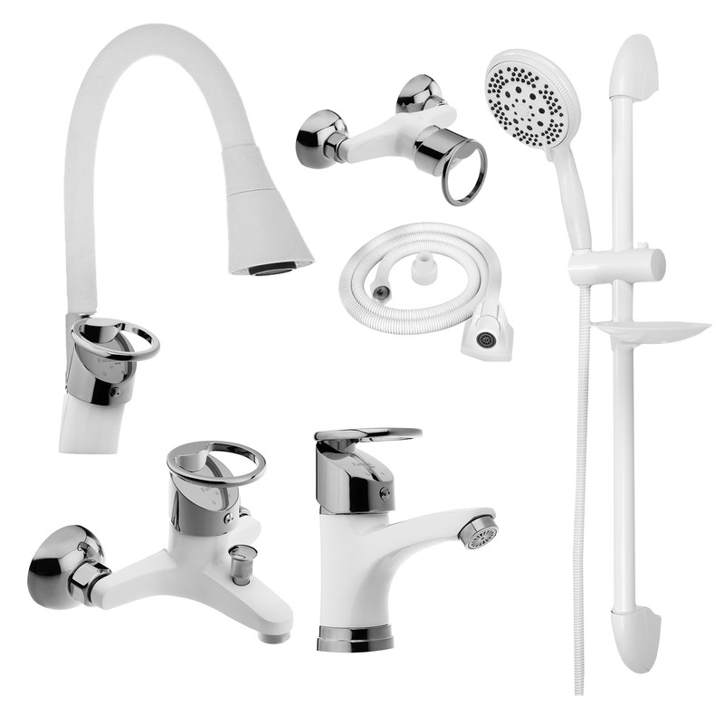 ست شیرآلات شیرآلات بهداشتی و ساختمانی توفیق مدل آبشاری النگویی سبددار مجموعه 6 عددی