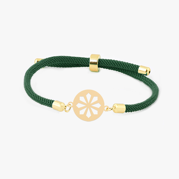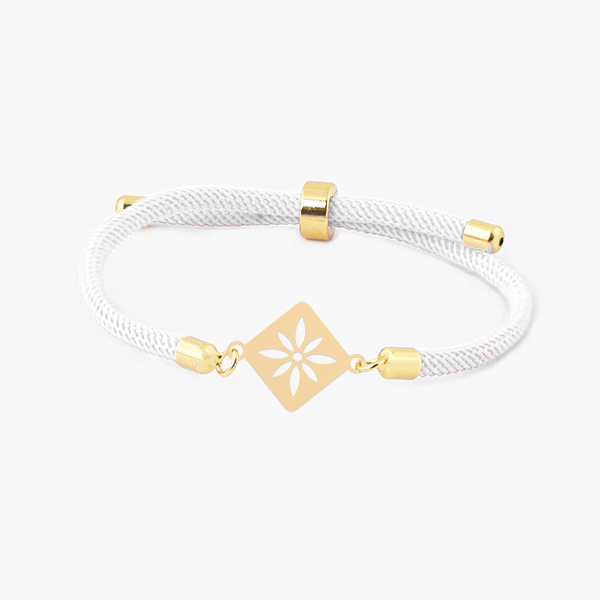 دستبند طلا 18 عیار زنانه شمیم گلد گالری مدل آسانسوری پلاک دار طرح گلبرگ رنگ زرشکی