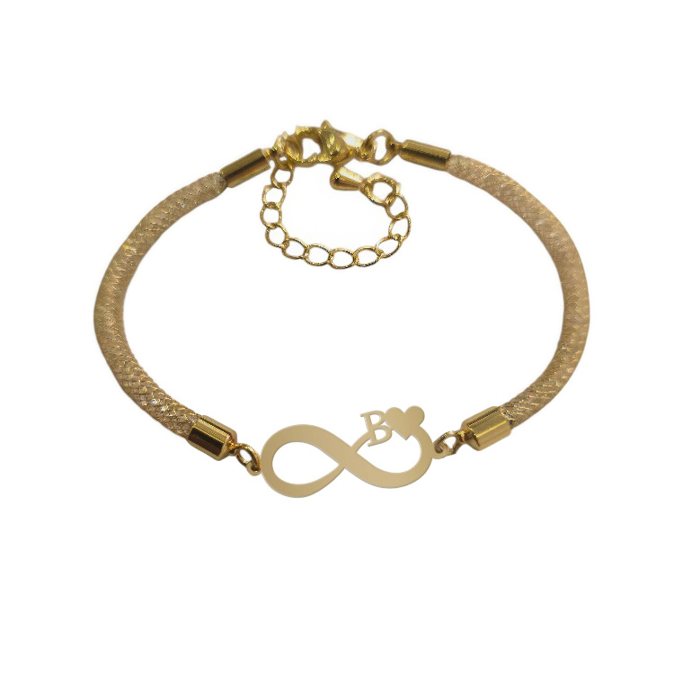 دستبند طلا 18 عیار زنانه شمیم گلد گالری طرح بی نهایت و حرف R کد D68-9