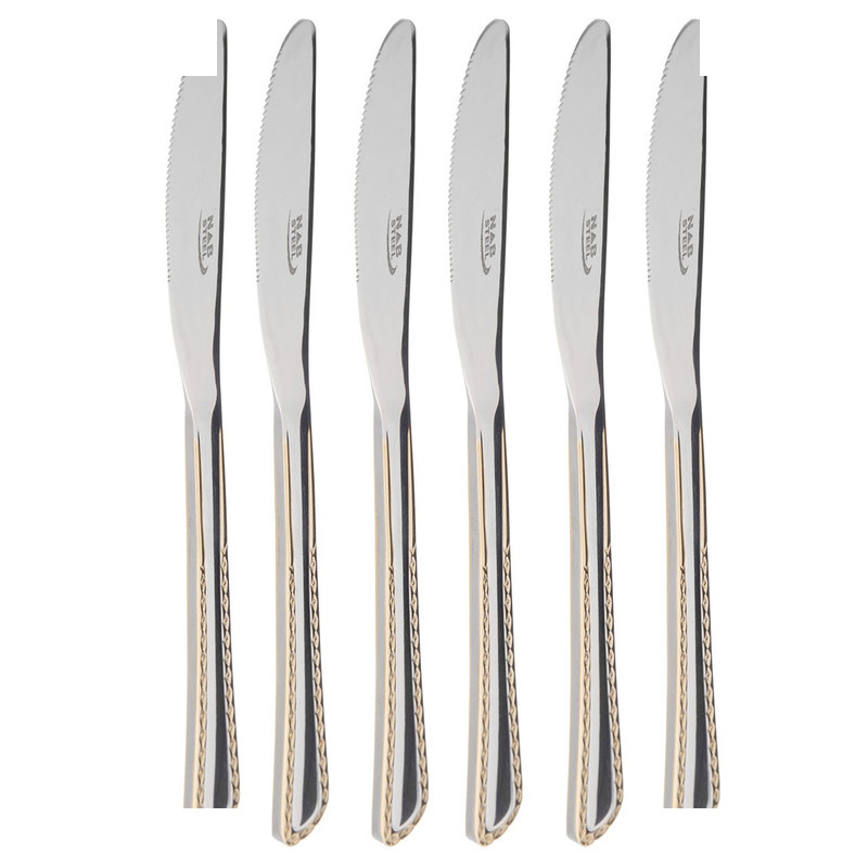 استیل 18/10 ضدزنگ با ضخامت 3/5 میلی متر - 6 عدد کارد میوه خوری به ابعاد 18x1.5x0.35 سانتی متر و وزن 60 گرم