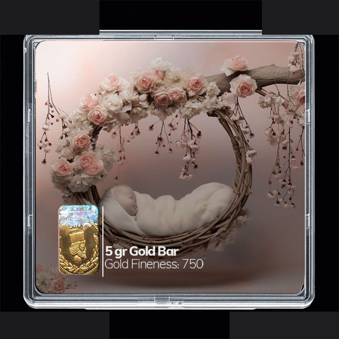 شمش طلا 18 عیار 100 سوت مدوپد مدل سبد و گل کد SG10318