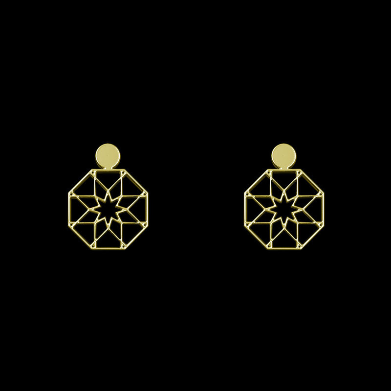 گوشواره طلا 18 عیار زنانه مدوپد مدل هندسی کد GA1-14107