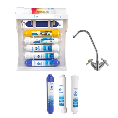 دستگاه تصفیه آب SF4800 با بهرهگیری از ۱۰ فیلتر پیشرفته در مراحل مختلف، به صورت تخصصی طیف وسیعی از آلایندهها و ناخالصیها را حذف میکند. از فیلترهای الیافی برای جذب ذرات معلق گرفته تا فیلتر ممبران با قدرت بالا برای حذف نیترات، نیتریت، جیوه، شوری و سایر فلزات سنگین، این دستگاه عملکردی کامل در تصفیه آب دارد. سایر فیلترها نیز بهبود طعم، بو، قلیاییسازی و اکسیژنرسانی به آب را بر عهده دارند. البته باید بدانید که هر فیلتر به طور میانگین تا یک سال عمر مفید دارد و به راحتی قابل تعویض است.