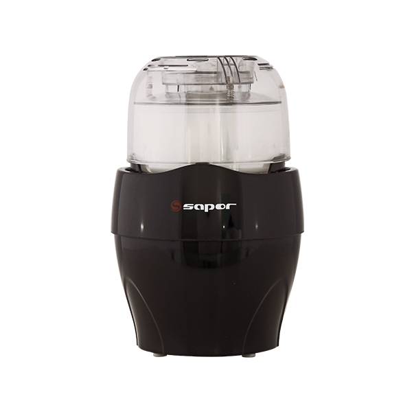 درب از جنس پلی کربنات و ضد ضربه، رینگ آب بندی برای جلوگیری از ریزش مواد آسیابی، مخزن از جنس استیل ضد زنگ با قابلیت جداشدن و شستشو، کاسه خرد کن از جنس استیل، ولتاژ 220 ولت