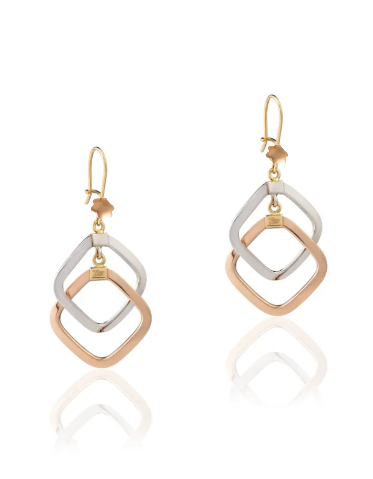 گوشواره طلا 18عیار اپال گلد مدل مربعی زنجیری