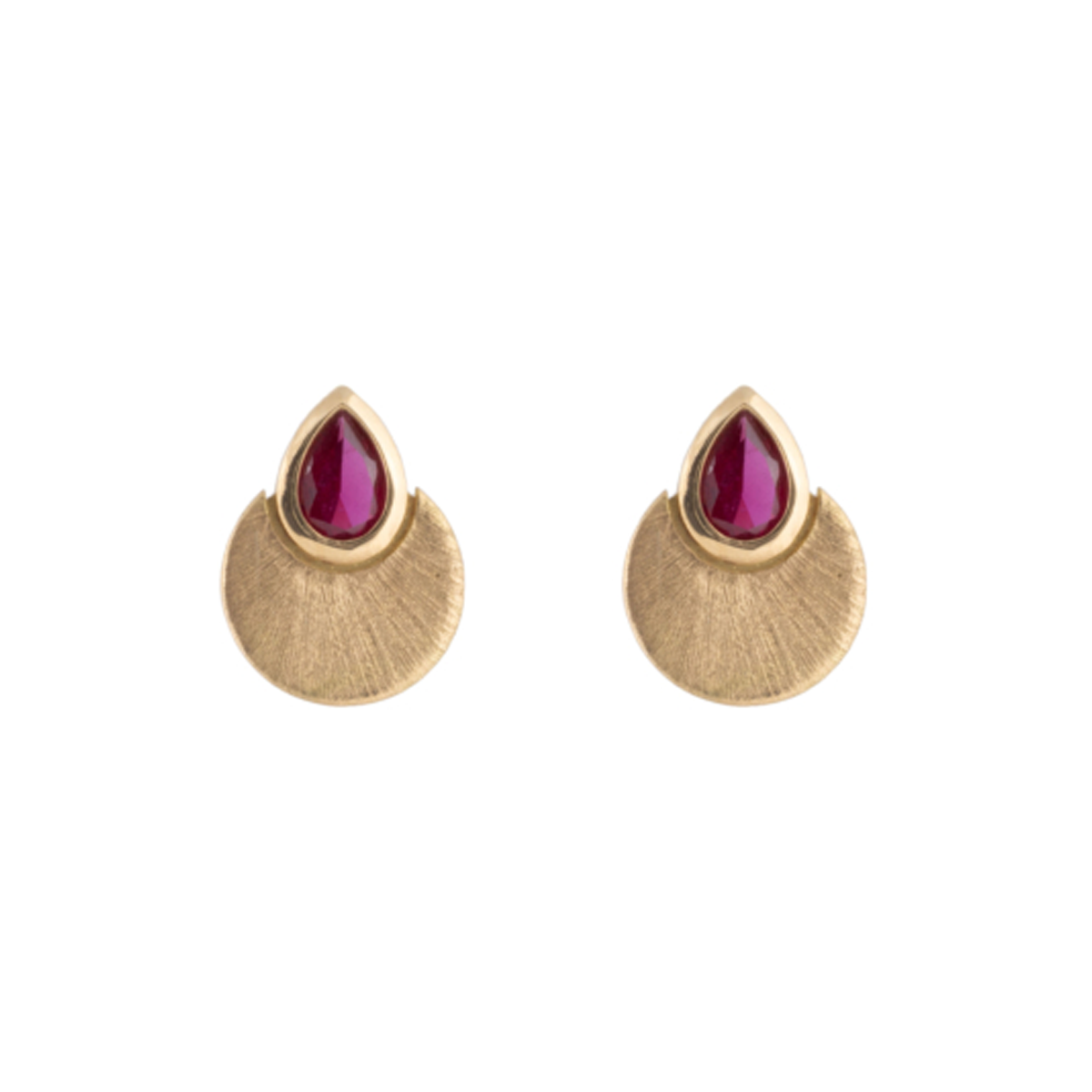 گوشواره طلا زنانه سور گالری مدل آویز سنگ قرمز کد WE4951