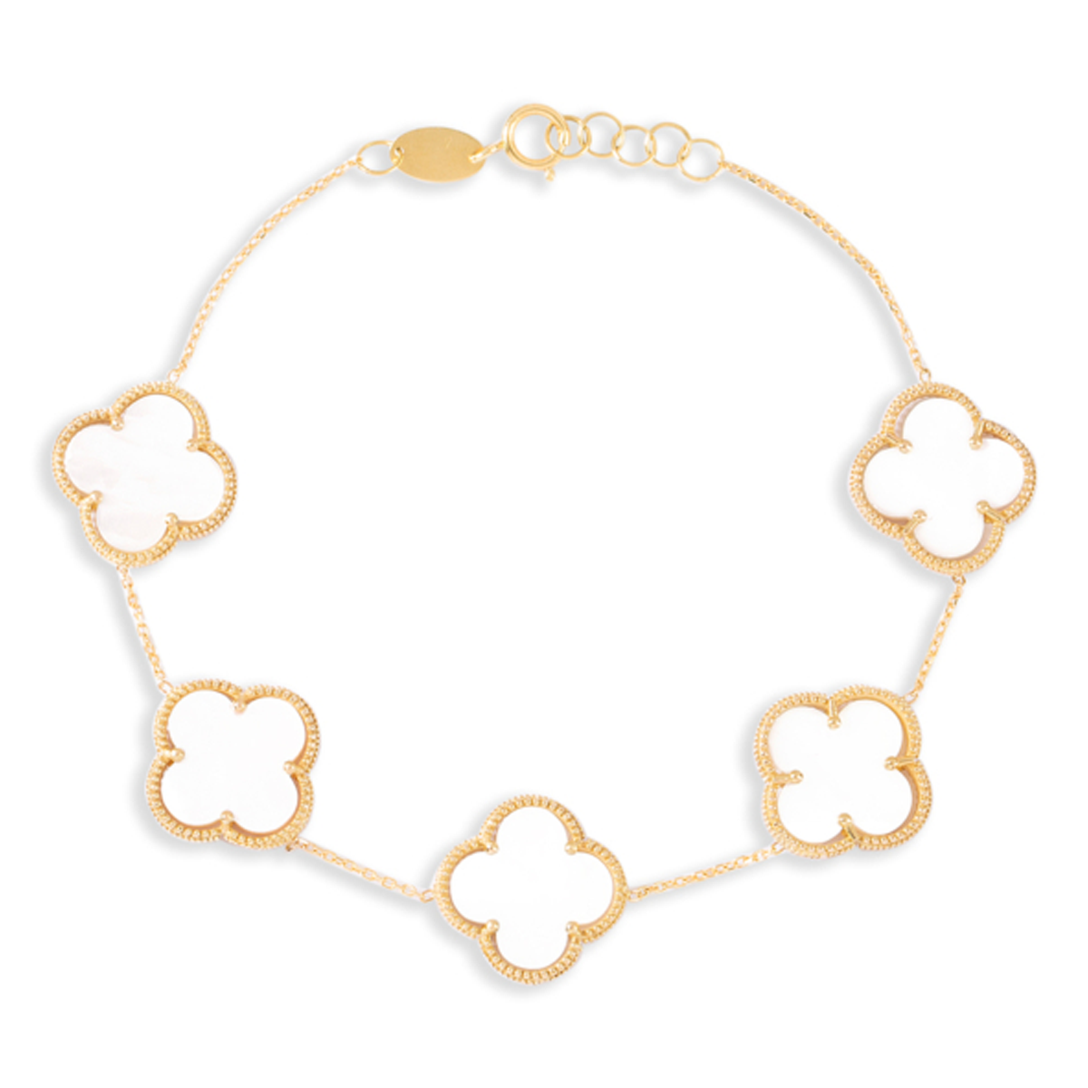 دستبند طلا 18 عیار زنانه سور گالری مدل 5 گل ونکلیف سفید کد wb2124