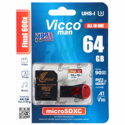 کارت حافظه microSDXC ویکومن مدل Final 600X کلاس 10 استاندارد UHS-I U3 سرعت 90MBps ظرفیت 64 گیگابایت به همراه آداپتور